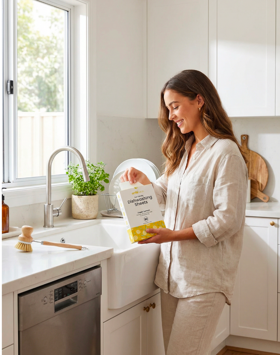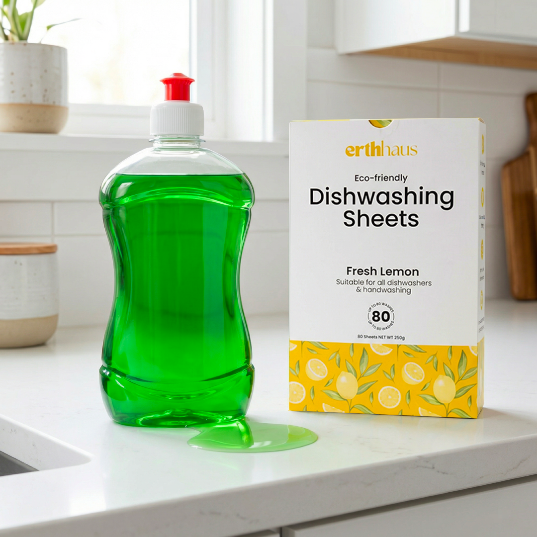 ✅ Clean, Responsible Formula: Our dry, plastic-free sheet relies on modern builder/chelator chemistry and clean-ingredient surfactants to deliver a rinse-clean shine—without the harsh extras. Unlike many traditional liquids, pods and tabs, Erthhaus contains no phosphates, chlorine bleach (sodium hypochlorite), ammonia, ethoxylated surfactants (like SLES—so no trace 1,4-dioxane), formaldehyde-releasing or isothiazolinone preservatives (MI/MCI/BIT), synthetic dyes, or antibacterial disinfectants (triclosan/quats).